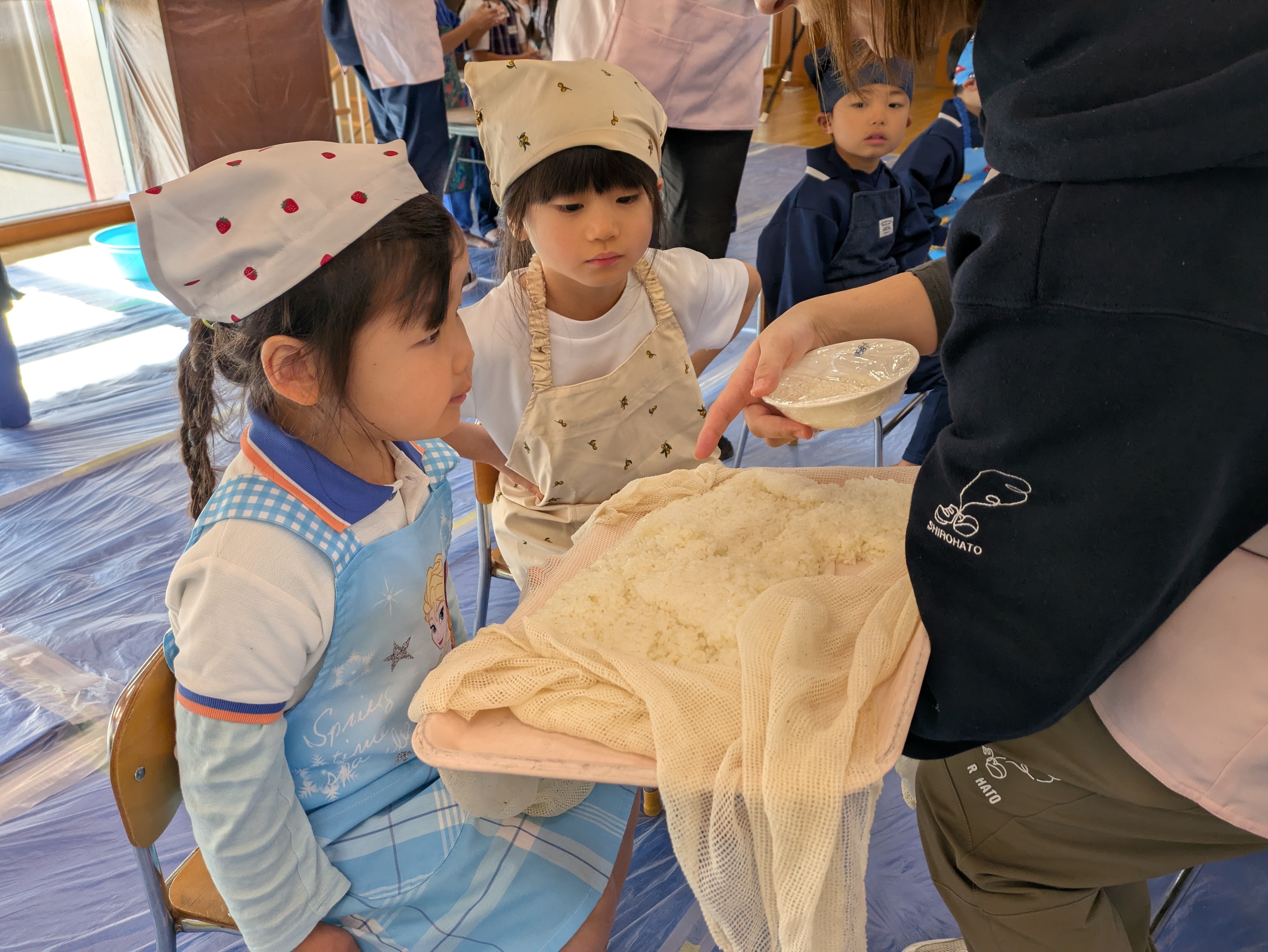 もち米の匂いを嗅ぐと「お餅の匂いがする!」「食べたい!」と楽しみにする子ども達。